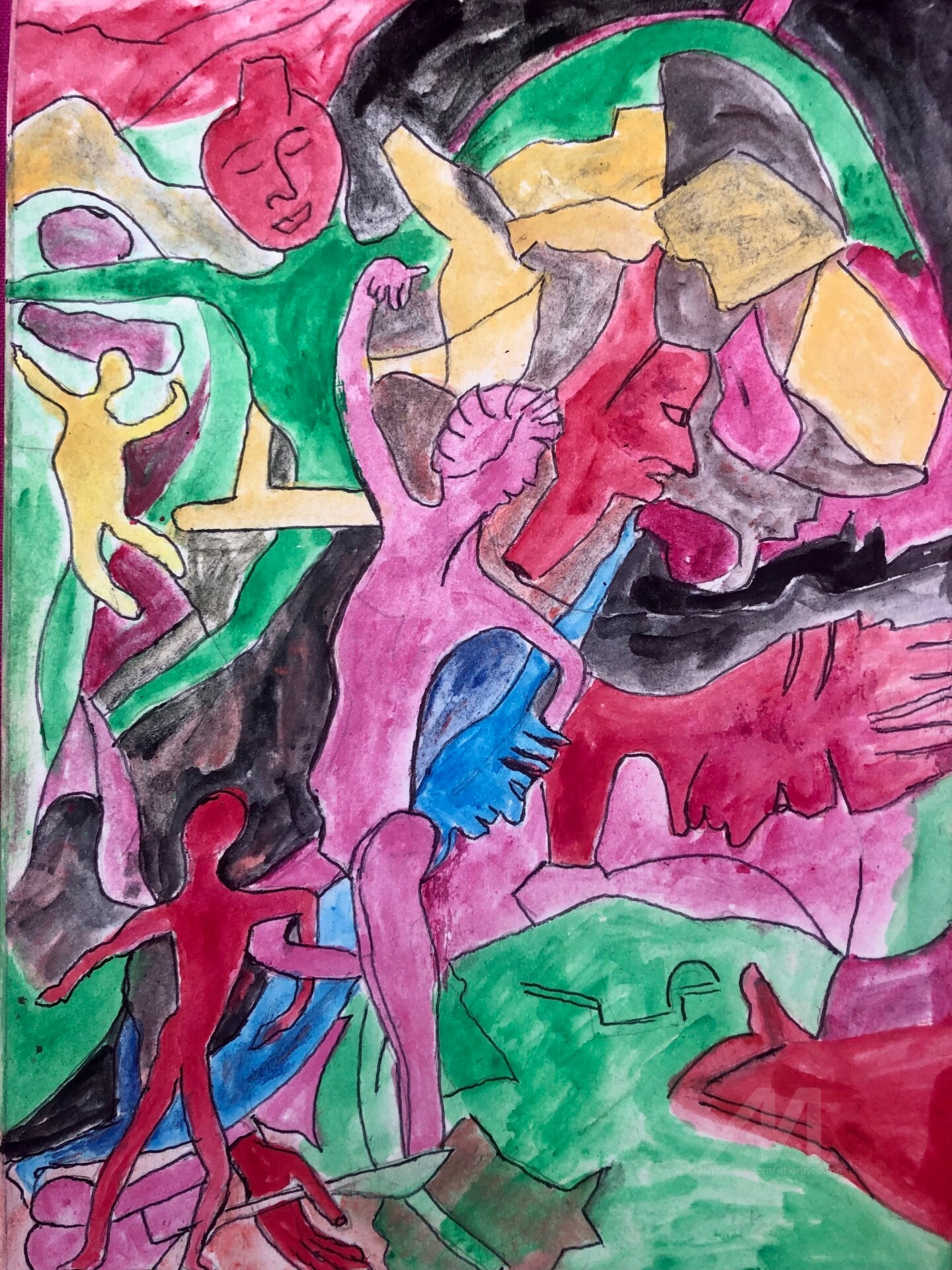 GOUACHE SUR TABLEAU .LE TABLEAU EST UNE REPRODUCTION D'OEUVRE DE LA SERIE TECHNIQUES MIXTES SUR MON SITE