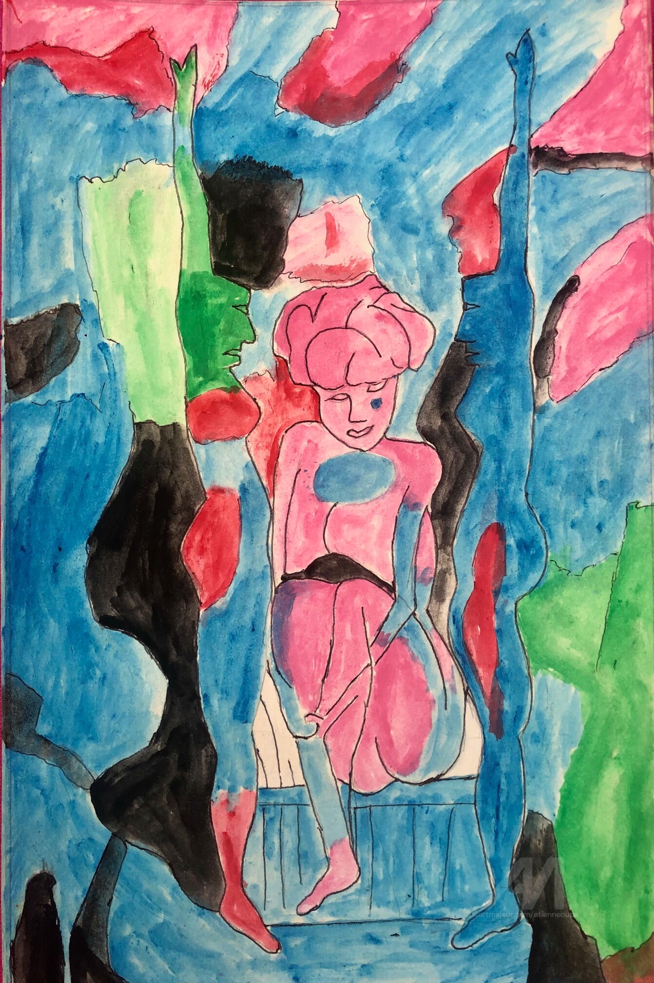 GOUACHE SUR CARTON LE SUJET REPRESENTE UNREPRODUCTION D'UN TABLEAU SUR LA SERIE TABLEAUX TECHNIQUES MIXTES