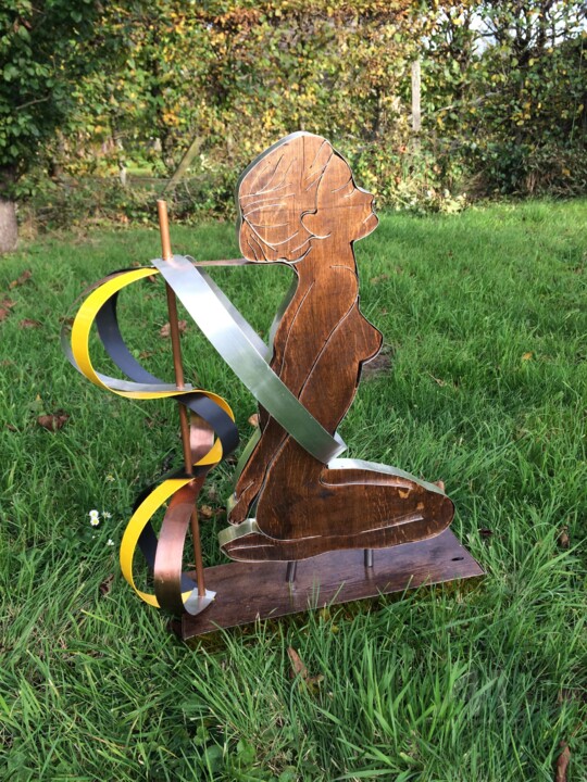 LA TRIBU est constituée de silhouettes - Chaque sculpture est exécutée à partir de grandes planches de chêne essentiellement et d'aluminium - Elles sont sculptées, incisées puis soulignées par des feuilles d'aluminium blanc ou jaune, et parfois de l'inox - Les faces des silhouettes peuvent être différentes peintes ou recouvertes de pigments